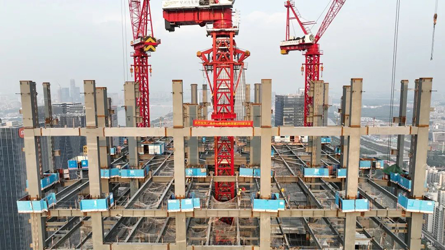 項(xiàng)目攻堅(jiān)克難、晝夜運(yùn)作,主體高度從150米到200米僅耗時(shí)126天;面對(duì)鋼管巨柱工序復(fù)雜、超高泵送、塔吊附著難度高等內(nèi)部重難點(diǎn)。由我公司生產(chǎn)ZSL2700一臺(tái)、ZSL850兩臺(tái)動(dòng)臂式塔機(jī)為項(xiàng)目的順利進(jìn)行起到了積極作用。