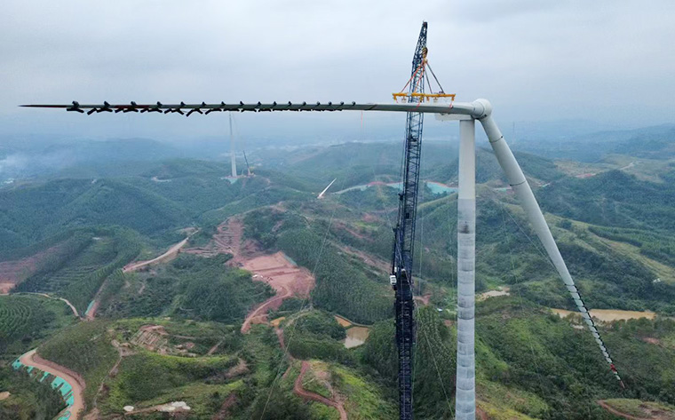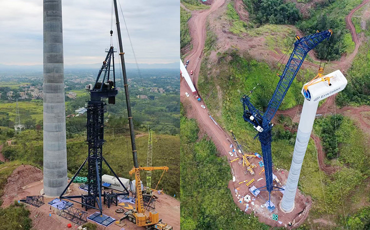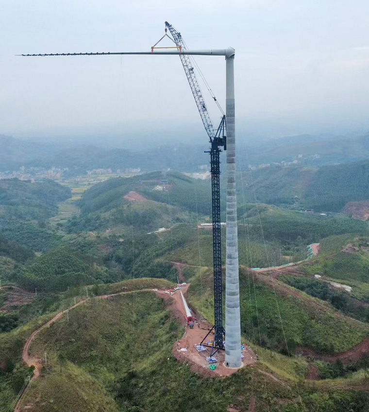 中昇建機ZSWL3000風電吊機2025年11月2日在廣西橫州風電項目成功完成首次吊裝。