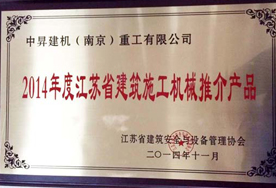 中昇建機被評為2014年度“江蘇省建筑施工機械推介產(chǎn)品”榮譽稱號