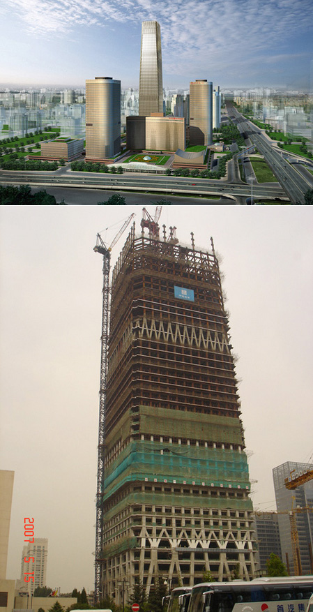 建筑施工高度330米,采用中昇建機(jī)ZSL850(50T)一臺(tái),ZSL750(50T)一臺(tái)。