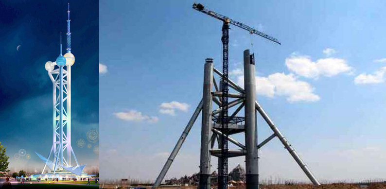 施工高度226米,采用中昇建機(jī)ZSL1000一臺(tái)(最大吊重50t)