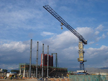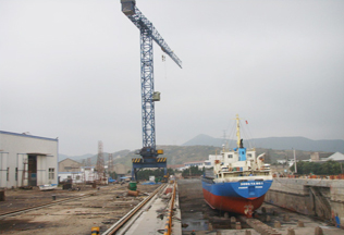 采購(gòu)兩臺(tái)中昇建機(jī)門(mén)式行走塔式起重機(jī)ZSC28300、ZSC26300,立于船塢旁用于船舶的生產(chǎn)和維修。
