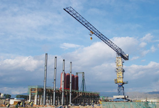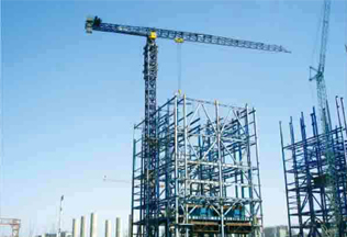 施工高度264.8米,采用中昇建機(jī)內(nèi)爬動(dòng)臂式塔機(jī)ZSL1000(64t)兩臺(tái)